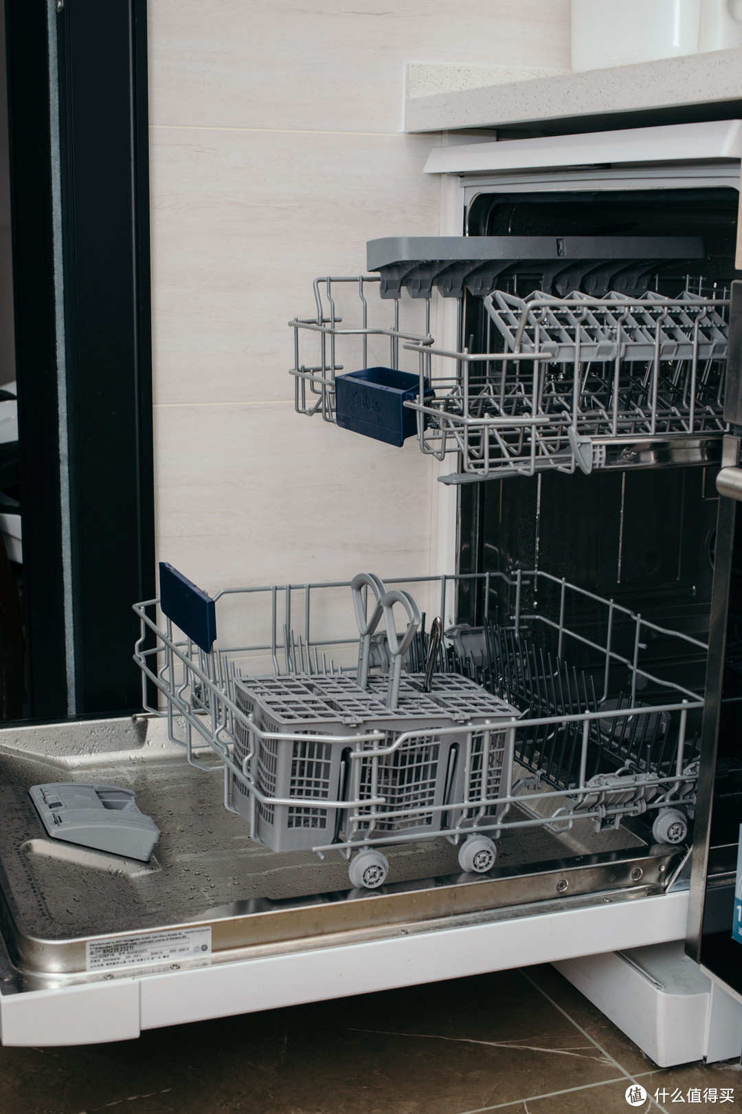 这是老生常谈了,洗碗机。配合洗碗粉和上下水工作的洗碗机将会把你的厨具清洁工作带到一个全新的高度。根本不是什么我随手就能把碗洗了这么简单的事,除了干净程度远超手洗以外,还能高温消毒,建议家家配备。比较实际的附加功能实际上就只有自动开门一项而已——而我由于身高合理,橱柜高度直接全部做高,也不需要去买贵的全嵌式降高洗碗机。直接入门级13套西门子。